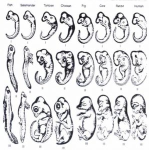 Well known “Carnegie stages” of embryo development seem to align with above musings. As human develops, it starts looking like an embryo of a lizard.. embryo of a bird.. embryo of a pig.. then the tail falls off.. the hand becomes bigger.. the stages of animal evolution appear to be replicated during human embryonic development.